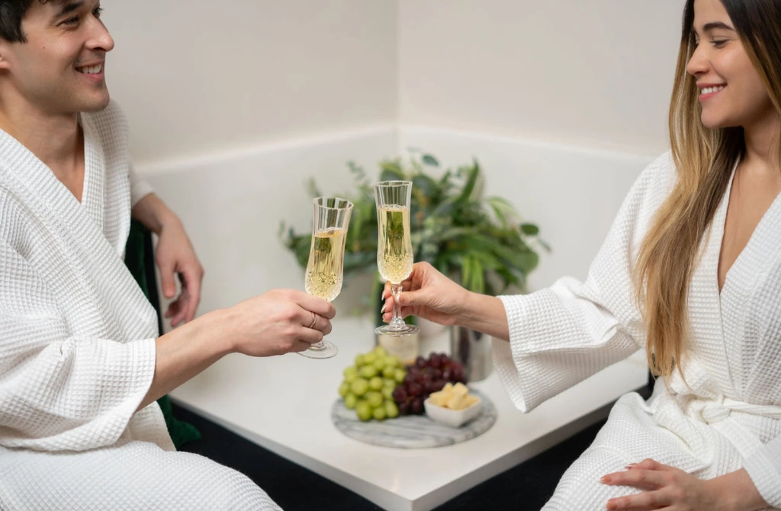 Add a little romance to your spa day. Enjoy a complimentary glass of champagne and chocolate covered strawberries in our tranquil relaxation lounge.